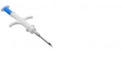La dimensione del trasponditore è di 8 mm, ∅ 1,4 mm per animali d’affezione . La siringa è dotata di blocco per impedire una involontaria fuoruscita del chip. Il trasponditore è rivestito esternamente di Parylene® per impedire la migrazione post-impianto del transponder. Ogni confezione sterile monouso comprende la siringa sottocutanea e 8 etichette adesive riportanti il codice di 15 cifre in chiaro ed in bar-code oltre alla data di produzione e di scadenza che è di 5 anni dalla produzione.